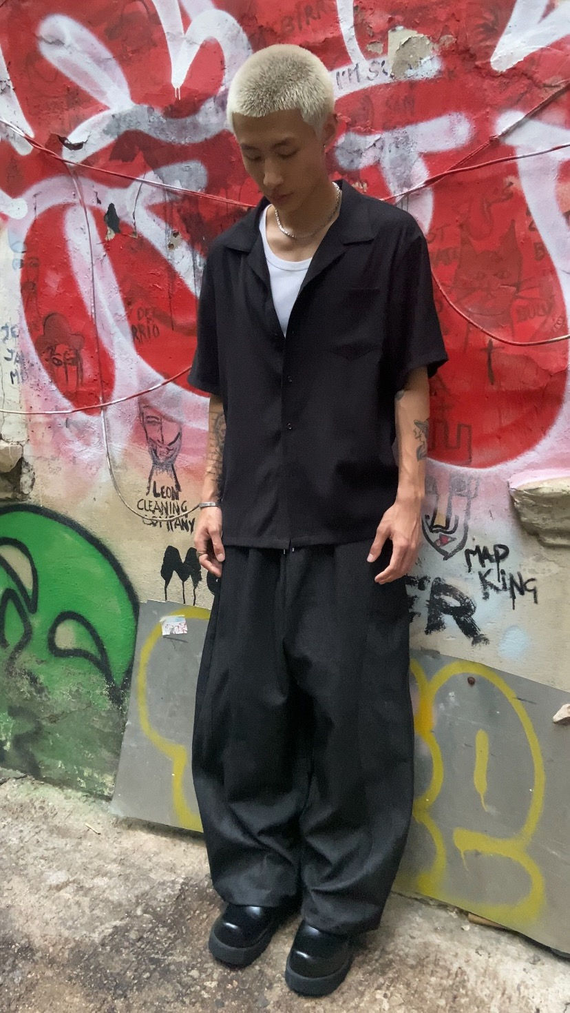 水洗皺摺彎刀褲